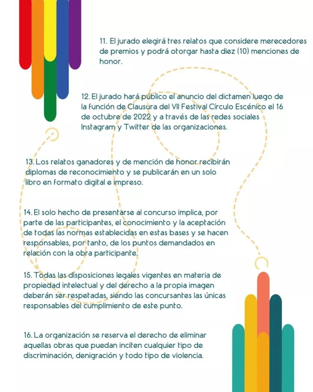 El Concurso de Relatos Breves Eróticos, auspiciado y oganizado por País Narrado Venezuela y Festival Círculo Escénico, tiene como objetivo incentivar y visibilizar a las escrituras más allá de las imposiciones de la heteronormatividad y el sistema binario. En ese sentido, de acuerdo con las bases del concurso, los relatos debían ser de tema libre circunscrito al erotismo diverso e inclusivo.